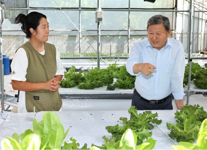먼저 김녕리 소재 ‘그린업’ 상추농장을 찾아 환경친화적 방식인 분무수경 재배 현장을 살펴보며, 기후 변화로 인한 농업환경의 변화와 이에 대응하는 첨단 재배 기술을 점검했다. 또한, 기후위기, 유통, 경영 등 농업 현안 전반에 대해 다양한 의견을 나눴다.