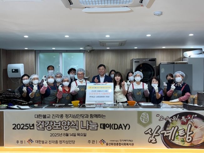 [경남도민뉴스=최재경 기자] 울산화정종합사회복지관(관장 황상선)은 2025년 8월 14일 목요일에 시니어레스토랑 화정에서 경로식당 이용 어르신 300명을 대상으로 건강한 여름나기를 위한 삼계탕 특식 지원 ‘건강보양식 나눔데이(DAY)’ 행사를 실시했다.