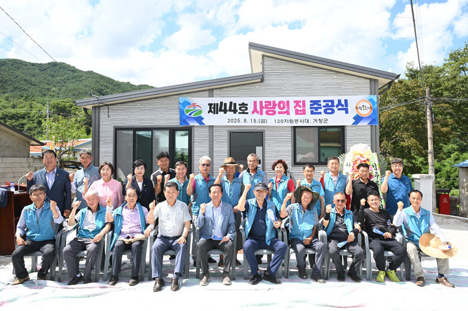 [경남도민뉴스=백형찬 기자] 거창군 120자원봉사대는 지난 15일, 거창군 웅양면 노현리 화동마을에서 ‘제44호 사랑의 집’ 준공식을 개최하고, 주거 취약계층을 위한 따뜻한 나눔을 이어갔다.