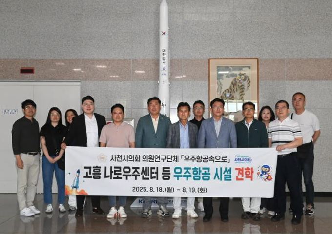 [경남도민뉴스=변정형 기자] 사천시의회 의원연구단체 ‘우주항공속으로’는 8월 18일부터 19일까지 전라남도 고흥군에 위치한 나로우주센터 등 주요 우주항공시설을 둘러보며 사천시 위성특화지구의 발전 전략을 모색했다.