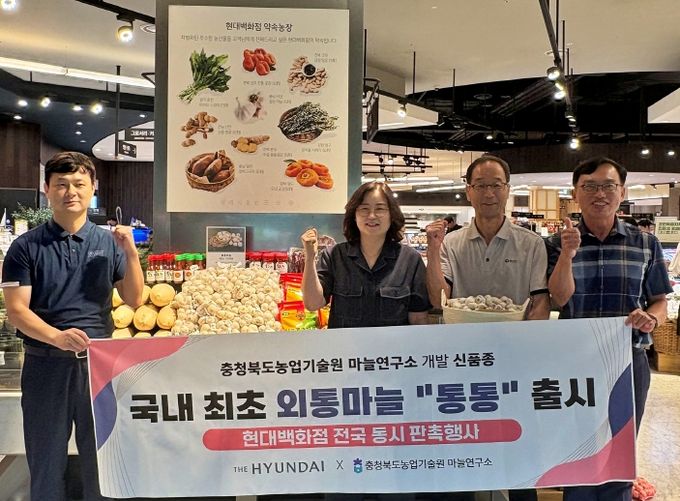 아울러 농업기술원에서 자체 개발한 신품종 마늘 ‘통통’도 현대백화점을 통해 국내에 처음 선보인다. ‘통통’은 기존 마늘과 달리 알밤처럼 한 덩어리 형태로 수확되는 외통 마늘 품종으로, 껍질이 잘 벗겨져 조리 편의성이 높고 당도가 높아 흑마늘 가공용으로도 적합하다.