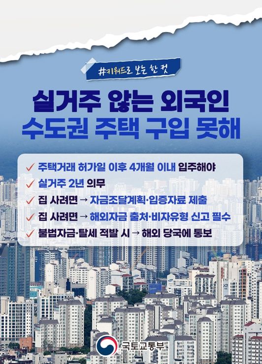 [경남도민뉴스=백형찬 기자] ■ 실거주 않는 외국인, 수도권 주택 구입 못해