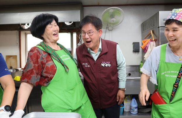[경남도민뉴스=김완호 기자] 박강수 마포구청장은 8월 22일 금요일 오전 11시 30분, 성산2동 자원봉사캠프와 함께한 ‘지역 어르신 삼계탕 나눔 행사’에 참석했다.