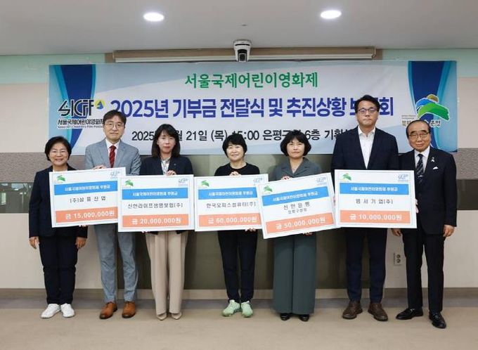 이날 후원금 전달식을 통해 ▲한국오피스컴퓨터(주) 6천만 원 ▲신한은행 은평구청지점 5천만 원 ▲신한라이프생명보험(주) 2천만 원 ▲(주)삼표산업 1천5백만 원 ▲범서기업(주) 1천만 원의 후원금은 서울국제어린이영화제에 전달됐다.