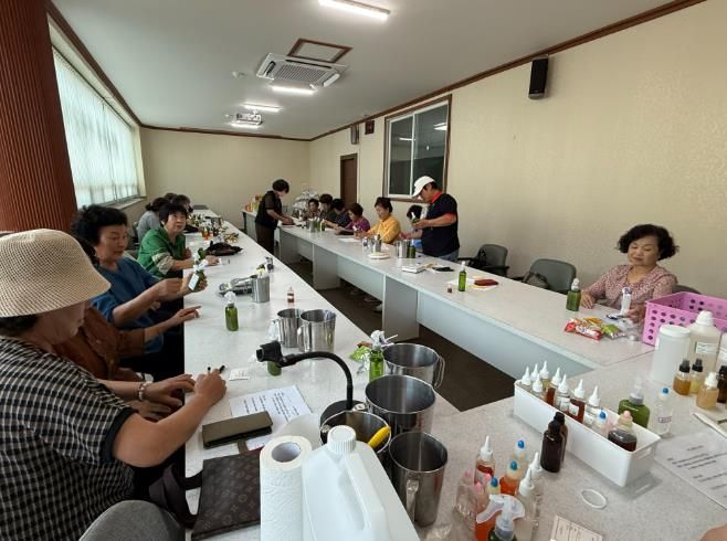 교육에는 각 읍·면 회원 20여 명이 참여했으며, 이들은 가야공예연구협회 박수현 강사의 지도 아래 친환경 천연화장품을 직접 만들며 환경을 지키는 것의 가치를 다시금 되새겼다.