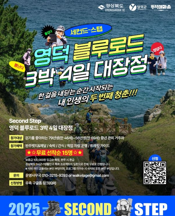 이어, ‘블루로드 3박 4일 대장정’은 △블루로드 전 구간 트레킹 △지역의 역사와 문화를 담은 관광지 방문 △노을·밤바다 트레킹 등으로 구성돼 영덕군의 수려한 자연환경과 고풍스러운 문화를 만끽하게 된다.