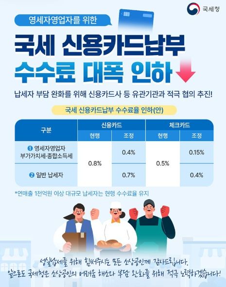 [경남도민뉴스=백형찬 기자] 영세자영업자를 위한 국세 신용카드납부 수수료 대폭 인하!