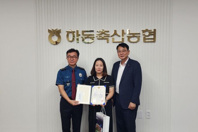 하동축산농협은 지난 26일, 이oo 계장이 금융사기 차단에 기여한 공로를 인정받아 하동경찰서로부터 감사장과 포상금을 수여 받았다고 밝혔다.