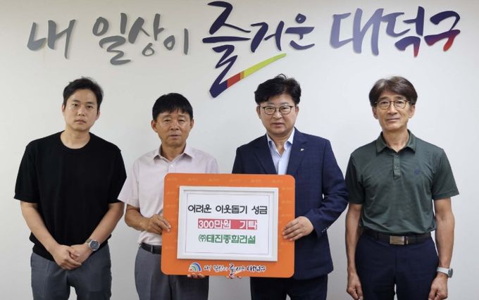 [경남도민뉴스=도문호 기자] 대전 대덕구는 ㈜태진종합건설(대표 오재철)로부터 어려운 이웃을 위한 성금 300만원을 기탁받았다고 29일 밝혔다.