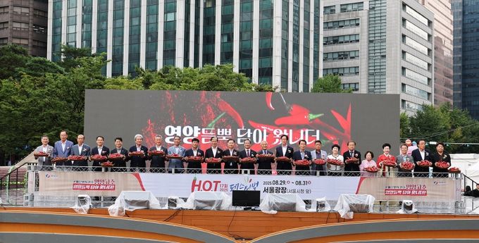 [경남도민뉴스=장강동 기자] 경북 영양군이 개최한 '2025 영양고추 H.O.T Festival'이 ‘K-매운맛의 원조 영양고추 영양듬뿍 담아 왔니더’라는 주제로 지난 8월 29일부터 8월 31일까지 3일간 서울광장에서 개최하여 시민들의 뜨거운 호응 속에 성공적으로 마무리됐다. 영양군은 이번 행사에 약 15만여 명의 소비자가 다녀갔으며, 건고추와 고춧가루 등 주요 품목이 현장 판매와 홈쇼핑을 통해 약 40억 원의 매출을 달성했다. 또한 10억 원 규모의 예약주문을 추가로 확보하며 영양고추의 우수성과 브랜드 가치를 다시 한번 입증하는 성과를 거뒀다. 또한 TV광고, 언론보도, 오프라인 프로모션 행사 등으로 350억원 이상의 홍보 및 경제 유발 효과를 거두었다.