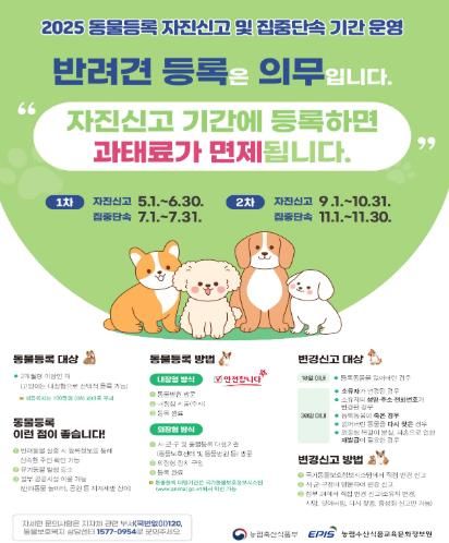 박동식 시장은 “반려동물 등록은 유실·유기 방지와 소유자의 책임 의식 강화를 위한 법적 의무사항”이라며 “책임있는 반려문화가 자리 잡을 수 있도록 자진신고 기간 내 소유자의 적극적인 참여를 바란다”고 당부했다.
