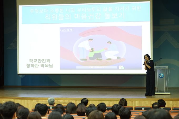 학교안전과 박옥남 학생건강담당 장학관이 ‘보고 듣고 말하기’를 주제로 강연을 진행했으며, 학생과 동료들의 위험 징후를 발견하는 방법과 효과적인 경청·대화법을 구체적으로 설명해 참석자들의 큰 공감을 얻었다.