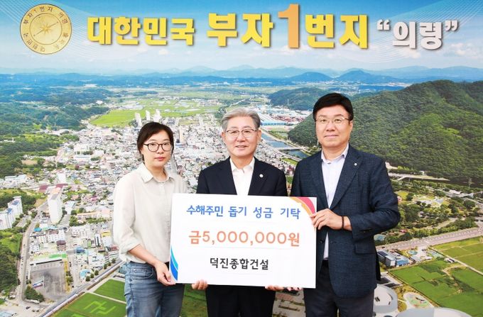 [경남도민뉴스=이상민 기자] 의령군은 덕진종합건설에서 최근 집중호우로 피해를 본 이재민들의 조속한 생활 안정과 피해 복구를 위해 수해 복구 성금 500만원을 기탁했다고 4일 밝혔다.