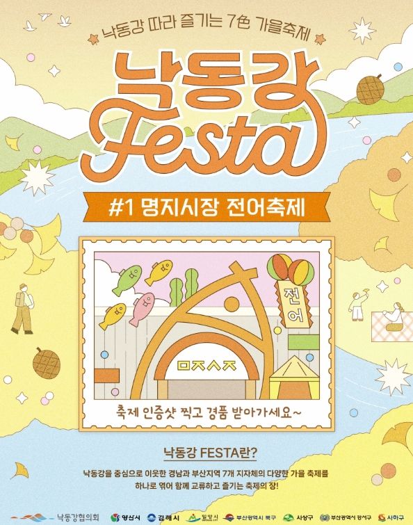 이번 이벤트는 9월 9일부터 11일까지 열리는 부산 강서구의'제23회 명지시장 전어축제'를 시작으로, 외계인대축제(경남 밀양시) 사상강변축제(부산 사상구), 낙동강 구포나루 축제(부산 북구), 2025 바다미술제(부산 사하구), 양산국화축제(경남 양산시), 김해 분청도자기축제(경남 김해시) 순으로 이어지며, 11월 초 김해 분청도자기축제를 끝으로 막을 내린다.