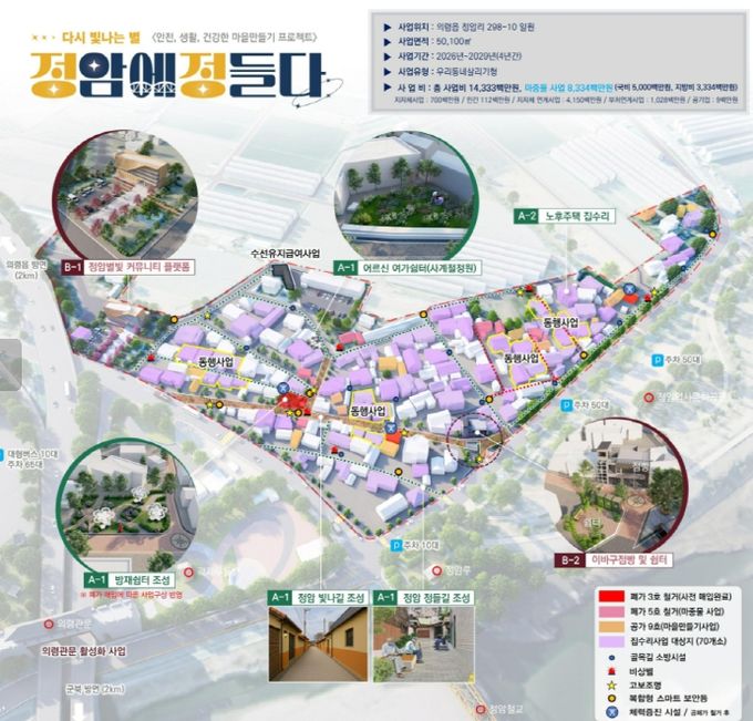 주요 사업으로 ▲노후 골목길 정비 ▲노후주택 집수리 지원 ▲정암별빛 커뮤니티 플랫폼 조성 ▲이바구쉼터 확장 ▲정암마을만의 특색있는 축제 등을 추진하게 된다.