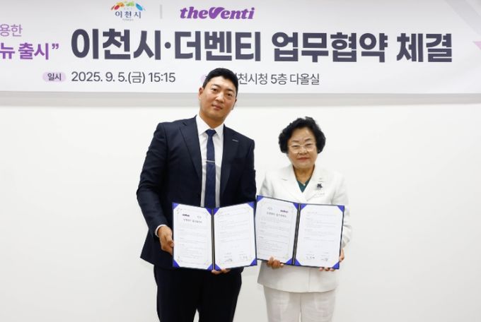 [경남도민뉴스=김동규 기자] 이천시는 9월 5일 이천시청 5층 다올실에서 더벤티 운영사인 주)에스앤씨세인과 이천쌀 미래 성장 및 지자체와 기업 간 상생협력을 위한 전략적 파트너십을 위한 업무협약식을 가졌다.