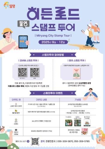 밀양시 관계자는 “이번 스탬프 투어는 관광객이 밀양의 숨은 매력을 직접 체험할 좋은 기회”라며 “다양한 테마와 이벤트로 즐거운 추억을 선사하고, 관광객의 지역 내 소비 촉진을 통해 지역 상권과 소상공인에게 실질적인 도움이 되기를 바란다”라고 말했다.