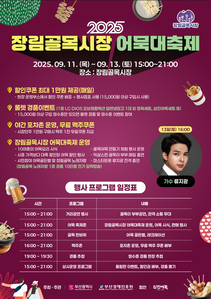 주민들이 직접 참여하는 ‘장림골목시장 노래자랑’은 지역 공동체가 함께 어울리는 시간을 제공하며, 다양한 경품도 지급돼 현장의 열기를 더한다.