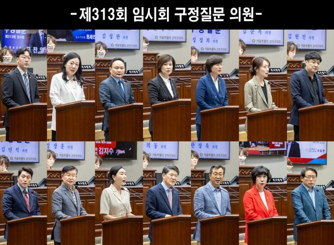 이날 본회의에서는 고찬양 의원, 최세진 의원, 김성한 의원, 강선영 의원, 정정희 의원, 김순옥 의원, 김현진 의원, 김민석 의원, 정장훈 의원, 김지수 의원, 김희동 의원, 한상욱 의원 총 12명의 의원이 23건의 구두 질문을 진행했다.