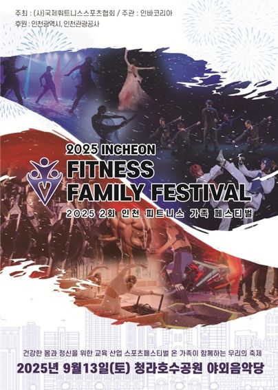 [경남도민뉴스=김용욱 기자] ‘2025 인천 피트니스 패밀리 페스티벌’이 오는 9월 13일 청라호수공원 야외음악당에서 열린다. 이번 행사는 ‘바른 몸, 바른 자세, 바른 마음’이라는 주제로 시민들이 건강하고 조화로운 삶을 실천할 수 있도록 돕는 것을 목표로 한다.