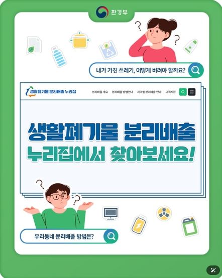 생활폐기물 분리배출 누리집에서 찾아보세요!