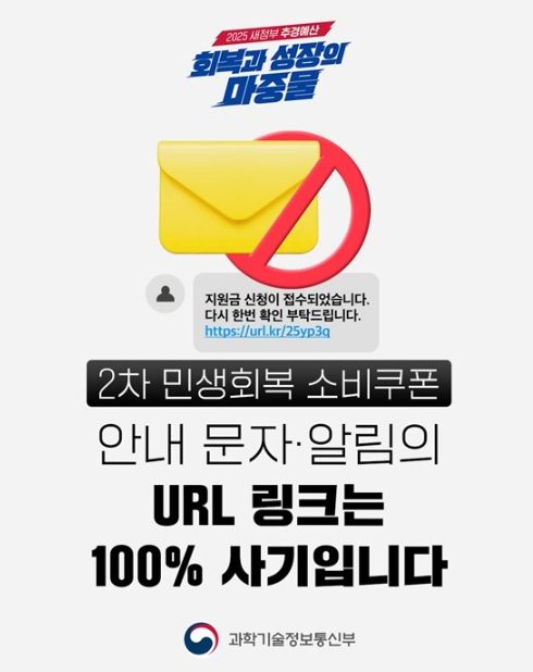 [경남도민뉴스=백형찬 기자] 2차 민생회복 소비쿠폰 안내 문자·알림의 URL 링크는 100% 사기입니다.