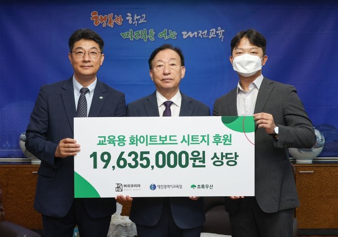 [경남도민뉴스=도문호 기자] 대전시교육청은 9월 18일 버쉬코리아의 후원참여 및 초록우산 대전지역본부의 연계로 19,635,000원 상당의 늘봄학교 사용 교육 물품(붙이는 화이트보드 1,050개)을 기탁받았다고 밝혔다.