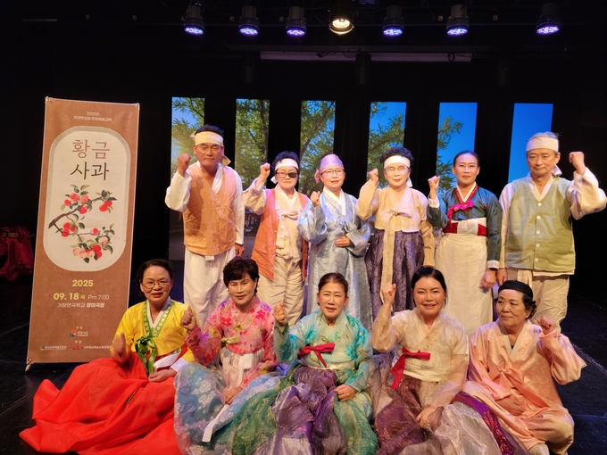 경남문화예술진흥원의 지역특성화문화예술사업은 지역의 독창적 문화콘텐츠를 개발하는 취지의 사업이다. 황금사과의 출연진들은 60대에서 80대의 시니어 세대들이고, 지도는 한국예술종합학교 전통예술원을 졸업하고 서울을 비롯한 각 도시의 대학에 출강하고 있는 경기민요의 전수자인 김도현원장이 4월부터 소리지도와 연기지도를 했다.