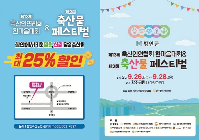 [경남도민뉴스=권중환 기자] 함안군은 9월 26~28일(3일간) 함주공원 마사토구장에서 ‘제13회 함안군축산인연합회 한마음대회’와 ‘제2회 축산물 페스티벌(축제)’을 개최한다고 밝혔다. 이번 행사는 급변하는 축산 환경 속에서 축산 농업인의 화합을 도모하고, 안전하고 우수한 함안 축산물을 널리 알리기 위해 마련됐다.