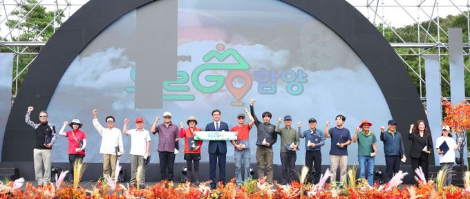 [경남도민뉴스=장광동 기자] 함양군은 9월 21일 오후 2시, 상림공원 고운광장에서 1,500여 명의 ‘오르GO 함양’ 참여자들과 관광객들이 참석한 가운데 ‘제1회 오르GO 함양 완등인의 날’ 기념행사를 성황리에 개최했다고 밝혔다.