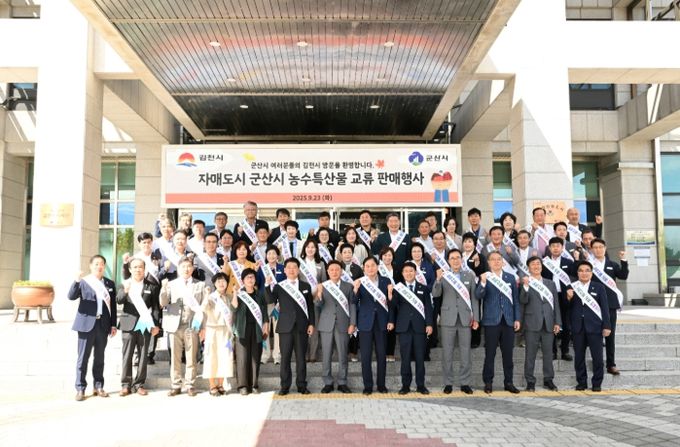 김천시와 군산시는 1998년 자매결연을 맺은 이후 2009년부터 해마다 양 도시를 오가며 특산물 교류 행사를 진행하고 있으며, 지난 7월 24일에는 김천시에서 군산시를 방문해 김천의 대표 농특산물인 샤인머스켓, 자두 등을 홍보 판매했다.