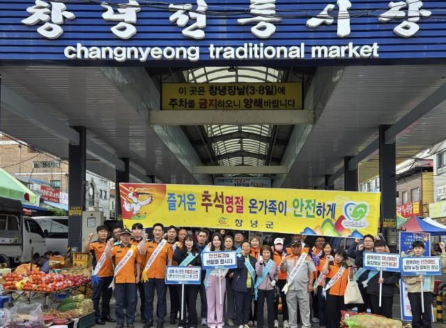 이번 캠페인은 다가오는 추석 명절을 맞아 창녕군, 창녕소방서, 안전보안관, 의용소방대 등 30여 명이 참여해 전통시장 주변의 위험요소를 점검하고, 방문객들에게 가을철 안전 위험요인 집중 신고기간을 홍보했다.
