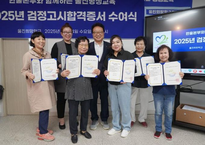 [경남도민뉴스=장강동 기자] 울진희망학교는 지난 9월 24일 울진종합터미널 2층 교실에서‘2025년 검정고시 합격증서 수여식’을 가졌다.
