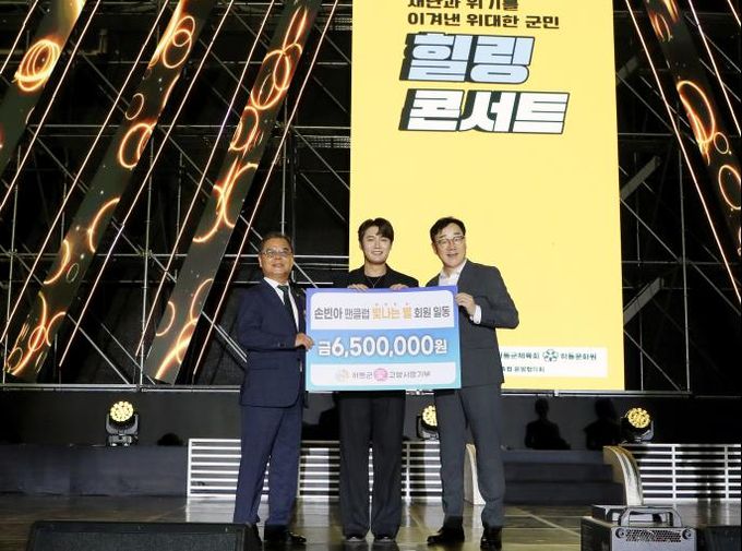 [경남도민뉴스=김태수 기자] 지난 29일, 하동공설운동장에서 개최된 힐링콘서트에서 손빈아 팬카페 회원들이 고향사랑기부금 650만 원을 전달했다.