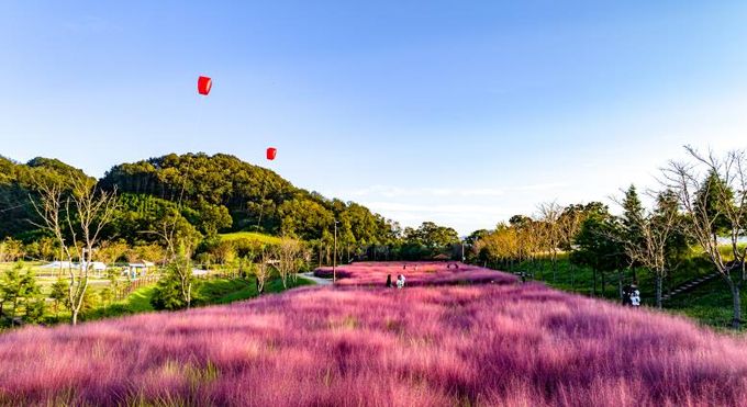 드넓은 초원을 분홍빛 물결처럼 출렁이게 만드는 핑크뮬리는 방문객들에게 몽환적이고 아름다운 풍경을 선사한다.