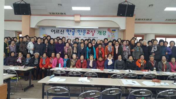 어르신들은 교육 내용으로 한글 기초반 자·모음 및 낱말쓰기와 중급반 문장 및 편지쓰기, 한문반 생활한자, 천자문, 고사성어를 배우게 된다. 올해 처음 설레이는 마음으로 한글기초반을 수강하여 배움을 시작하는 어르신부터 한글기초반을 수료하고 중급반으로 옮겨 수업을 듣는 89세의 고령의 어르신까지 새봄 신학기를 들뜬 마음으로 시작하고 있다.