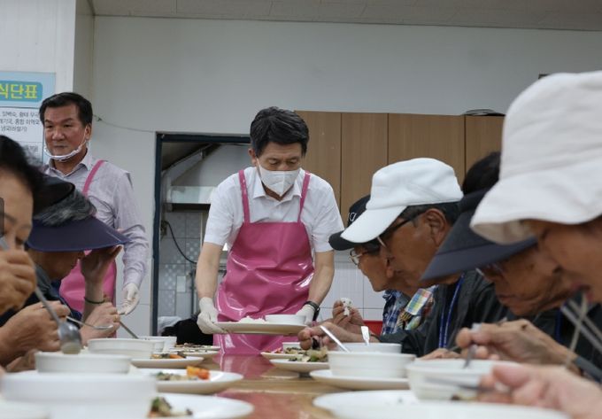 [경남도민뉴스=장강동 기자] 이강덕 포항시장이 2일 추석을 앞두고 무료급식소 ‘만나의집’을 방문해 어르신 200여 명에게 배식 봉사를 하며 감사의 마음을 전했다.
