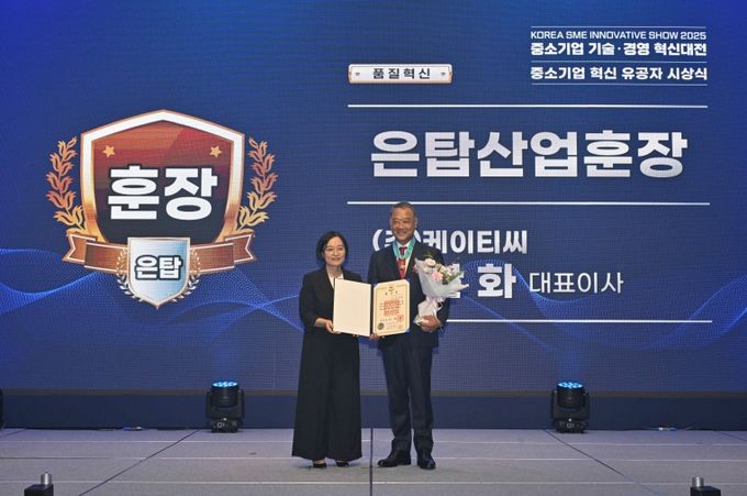 [경남도민뉴스=장광동 기자] 경상남도 함양군 휴천면 출신 향우인 박찬화 ㈜유아이엘 및 ㈜케이티씨 대표이사가 지난 9월 4일 제주에서 열린 ‘2025 중소기업 기술·경영혁신대전’에서 품질 혁신 부문 은탑산업훈장을 수상했다.