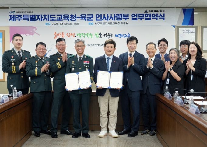 [경남도민뉴스=하형수 기자] 제주특별자치도교육청은 13일 도교육청 상황실에서 육군 인사사령부와 고등학생들의 진로 탐색 기회 확대를 위한 업무협약을 체결했다.