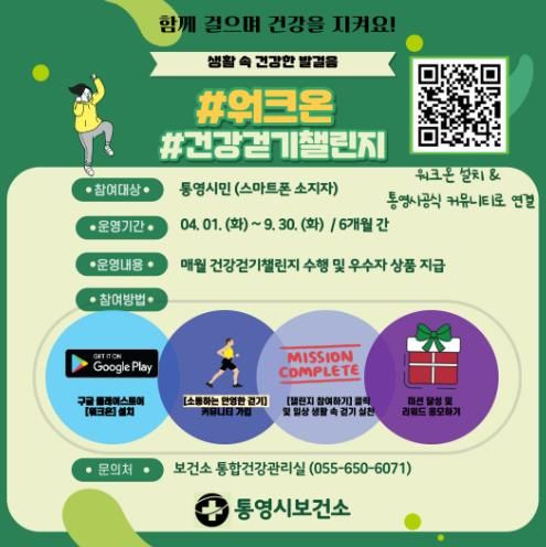 이번 사업은 시간과 장소에 구애받지 않고 참여할 수 있는 모바일 걷기 프로그램으로, 통영시에서는 시민들이 일상 속에서 손쉽게 걷기를 실천하고 꾸준한 건강관리 습관을 형성할 수 있도록 지원했다.