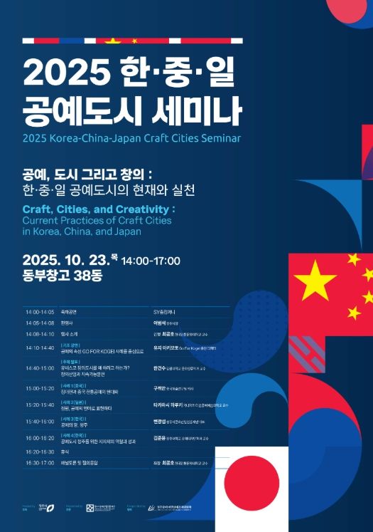 청주공예비엔날레조직위원회는 오는 23일 오후 2시 문화제조창 동부창고 38동에서 ‘2025 한·중·일 공예도시 세미나(Korea-China-Japan Craft Cities Seminar)’를 개최한다.