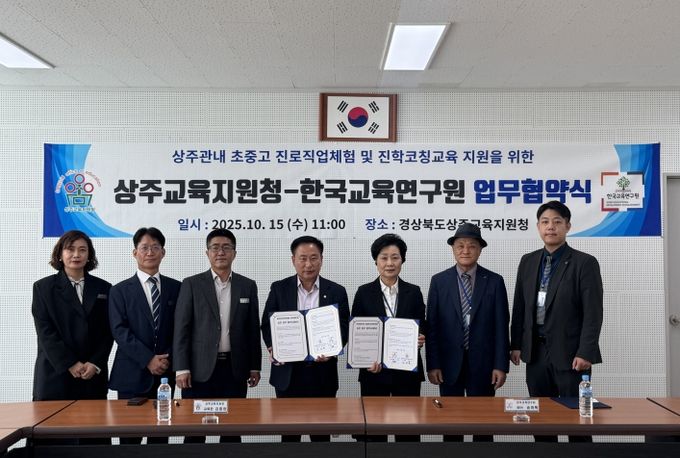 [경남도민뉴스=오창경 기자] 경상북도상주교육지원청은 10. 15. 11:00, 교육지원청 2층 소회의실에서 『2025학년도 행복교육 실현을 위한 업무협약(MOU) 체결식』을 주관하고, 한국교육연구원과 함께 지역 학생들의 미래 역량 강화를 위한 공동 협력에 나섰다.