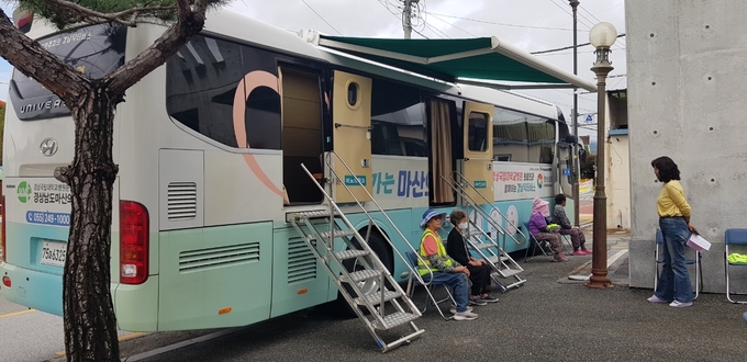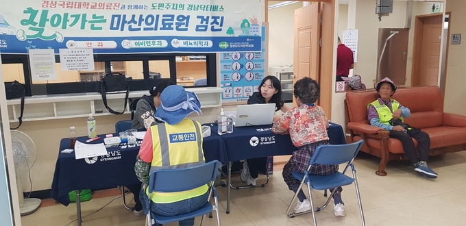 ‘찾아가는 마산의료원 무료검진’은 경상남도의 서민층 의료서비스 지원사업의 하나로, 마산의료원과 경상국립대학교병원 의료진이 도내 의료취약지인 면 지역을 직접 찾아가 검진버스에서 안과, 이비인후과, 비뇨의학과 3개 과에 대해 무료 검진을 지원하는 사업이다.