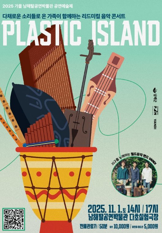 [경남도민뉴스=김부경 기자] 남해탈공연박물관(이동면 남해대로 2412)은 오는 11월 1일, 월드뮤직 콘서트 ‘플라스틱 아일랜드 Plastic Island’를 개최한다.