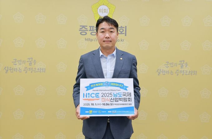 [경남도민뉴스=박만수 기자] 증평군의회 조윤성 의장이 20일, '2025 남도국제미식산업박람회'의 성공적인 개최를 응원하는 릴레이 챌린지에 동참했다.