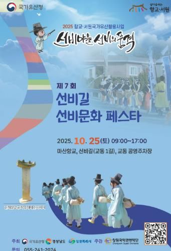 [경남도민뉴스=박민호 기자] 창원특례시는 오는 25일 오전 9시부터 오후 5시까지 마산향교에서 창원국악관현악단이 주관하는 ‘선비길 선비문화 페스타’를 개최한다고 밝혔다.