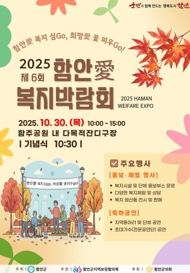 [경남도민뉴스=권중환 기자] 함안군과 함안군지역사회보장협의체는 오는 30일 오전 10시 함주공원 다목적잔디구장에서 ‘제6회 함안애(愛) 복지박람회’를 개최한다고 밝혔다.