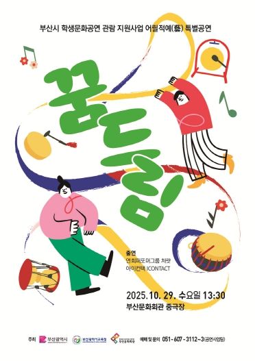 [경남도민뉴스=신석주 기자] (재)부산문화회관(대표이사 차재근)은 오는 10월 29일, 평소 공연관람 기회가 적은 부산지역 학교 밖 청소년들을 위한 특별공연 어릴적예(藝) '꿈드림' 공연을 개최한다.