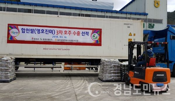 (합천/권연홍 기자) = 합천군(군수 하창환)과 합천유통(주)(대표 장문철)은 16일 영호진미 6톤을 올해 처음으로 호주에 수출했다. 호주 수출은 지난해 6월 27일 첫 수출 후 세번째로 해외수출에 활력을 불어넣고 있다.