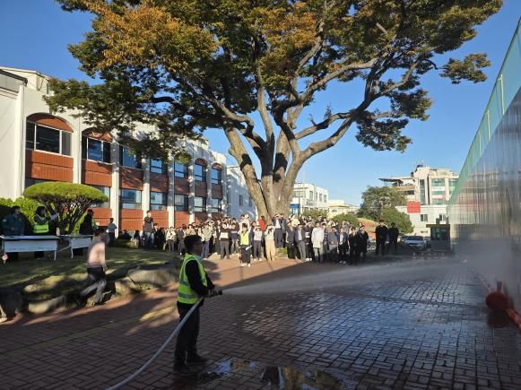 실제 화재 발생 상황을 가정해 △화재발생·상황전파 △직원·민원인 대피 △중요문서 반출 △화재진압 △구조구급 및 응급활동 등 일련의 대응 절차를 실전처럼 진행했다.